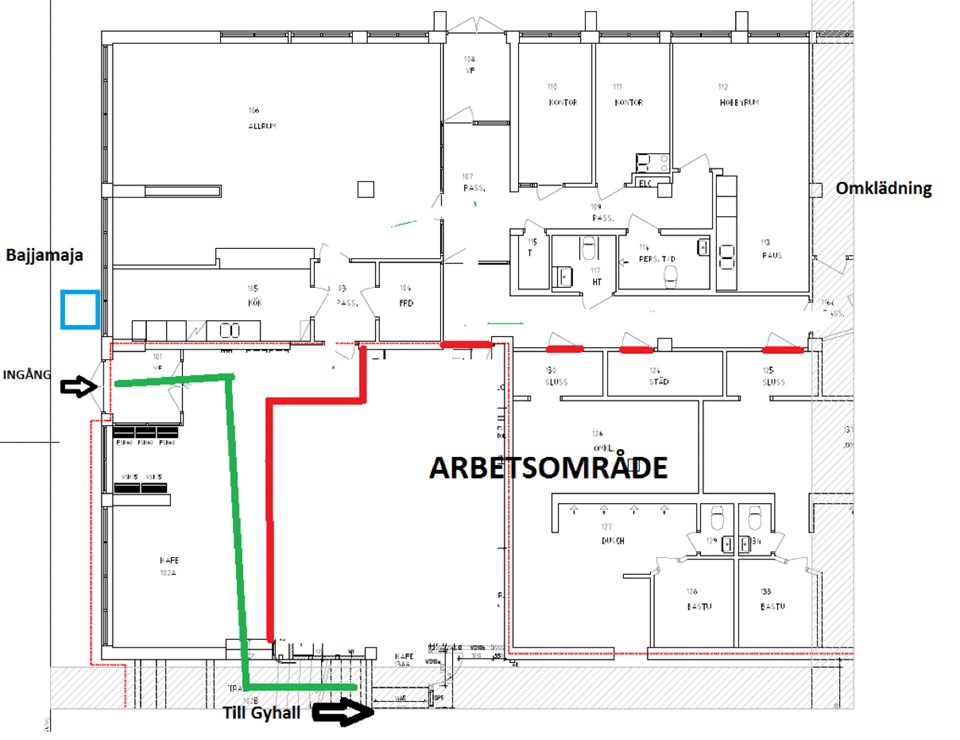 Sigtuna fritidscenter håller på att byggas om vilket innebär att ni som tränar där måste gå in i hallen en annan väg se bilden. Ni går in vanliga ingången och direkt till sporthallen. Ni kommer inte att komma åt omklädningsrummen och fritidsdelen så tänk på att fylla vattenflaskor innan ni kommer till hallen. Det kommer ställas bajamaja utanför entren. Detta kommer förhoppningsvis vara klart i slutet av oktober.
